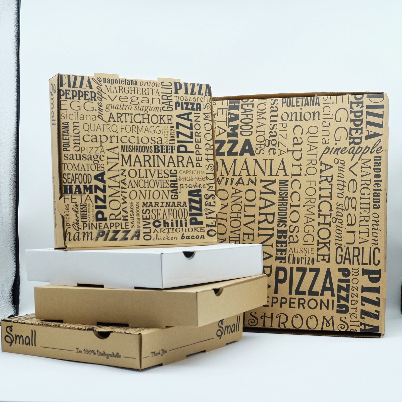 Available in a wide range of sizes from 7-inch to 15-inch, these pizza boxes can accommodate various pizza sizes and styles. The consistent height of 45mm across all sizes ensures a uniform appearance for your business.